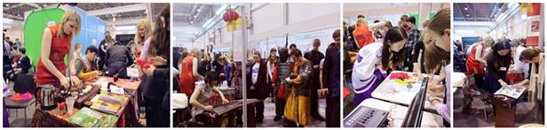 展会一开始,老师们积极分发孔子课堂宣传册,耐心介绍新西伯利亚孔子课堂的发展状况。很多参展游客被吸引前来参加书法和中国结体验活动;中国传统乐器古筝和葫芦丝的演奏,更引得过往人群纷纷驻足倾听。