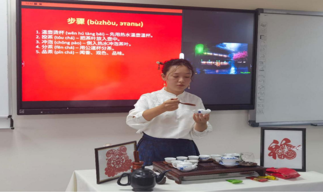 9月25日,新西伯利亚国立大学孔子学院以“共创未来”为主题,举办了一场别开生面的欢庆全球“孔子学院日”文化活动。此次活动由文艺表演和文化体验两大部分组成。表演环节节目有武术表演、古筝演奏和戏腔歌曲演唱;体验区设有国画扇面、茶艺品鉴和围棋对弈三个项目,为参与者们带来全方位的文化体验。
