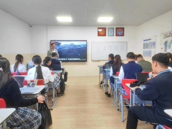 9月25日,比什凯克国立大学孔子学院下设总统天才学校教学点举办“孔子学院日”文化体验活动。该校全体学习中文学生齐聚一堂,通过讲座、视听和书法体验等形式,深度感受孔子思想与现代文明的交融。