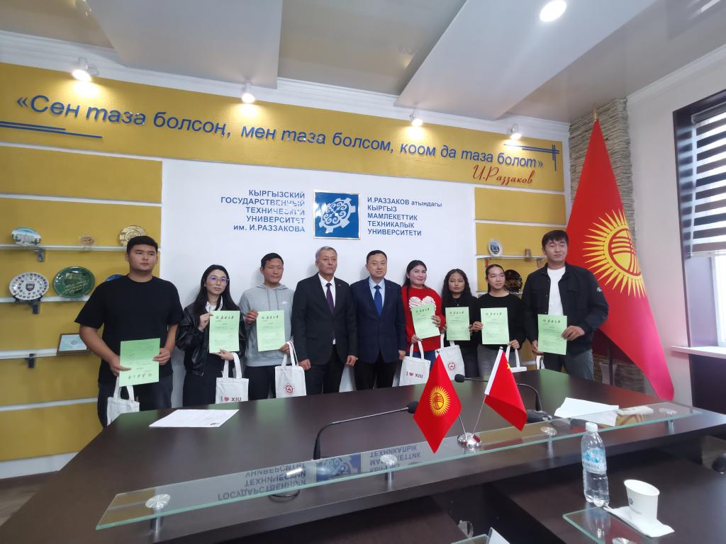 参访期间,代表团与吉方为已录取留学生举办见面会,陶庆书记和萨迪科夫副校长共同颁发录取通知书,并介绍入学准备、学习和企业实践等政策。