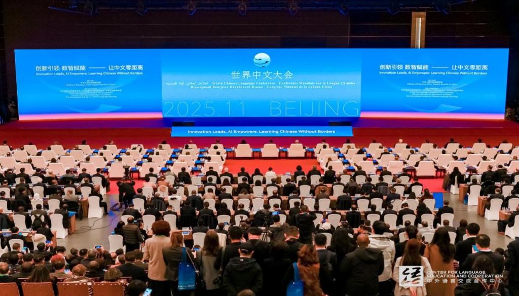 11月14日,2025世界中文大会在京开幕。大会由中华人民共和国教育部主办。中共中央政治局常委、国务院副总理丁薛祥出席开幕式并发表主旨讲话。教育部部长怀进鹏主持开幕式。大会以“创新引领 数智赋能——让中文零距离”为主题,中外政府官员、高校负责人、专家学者和国际组织代表等约2000人出席会议。我校党委常委、副校长晋刚率团出席,国际交流与合作处负责人,以及我校共建的吉尔吉斯斯坦比什凯克国立大学孔子学院、贾拉拉巴德国立大学孔子学院中外方院长等共同参加系列会议及活动。