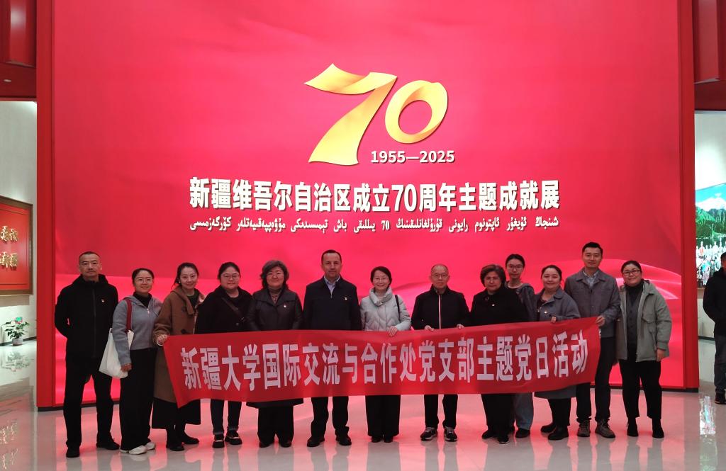 10月15日下午,国际交流与合作处党支部与结对共建的国际文化交流学院行政党支部联合开展“党旗映天山”主题党日活动,组织全体党员前往乌鲁木齐文化中心展览馆,集体参观学习“新疆维吾尔自治区成立70周年成就展”,共同回顾光辉历程,感受辉煌成就,凝聚奋进力量。